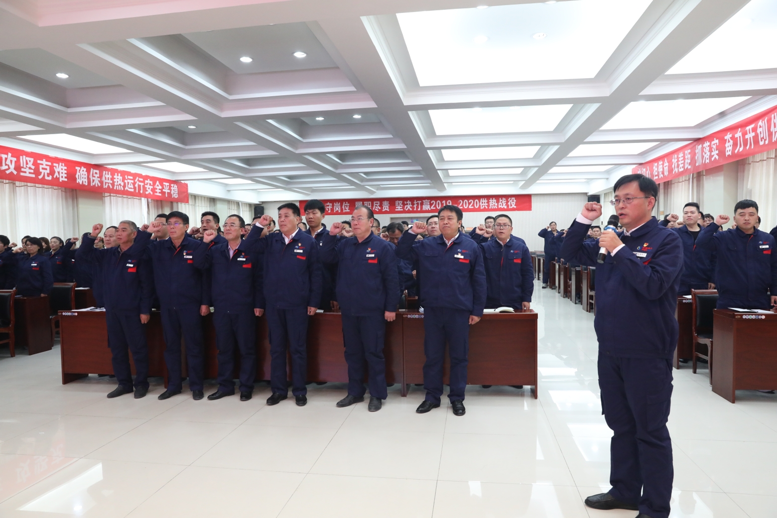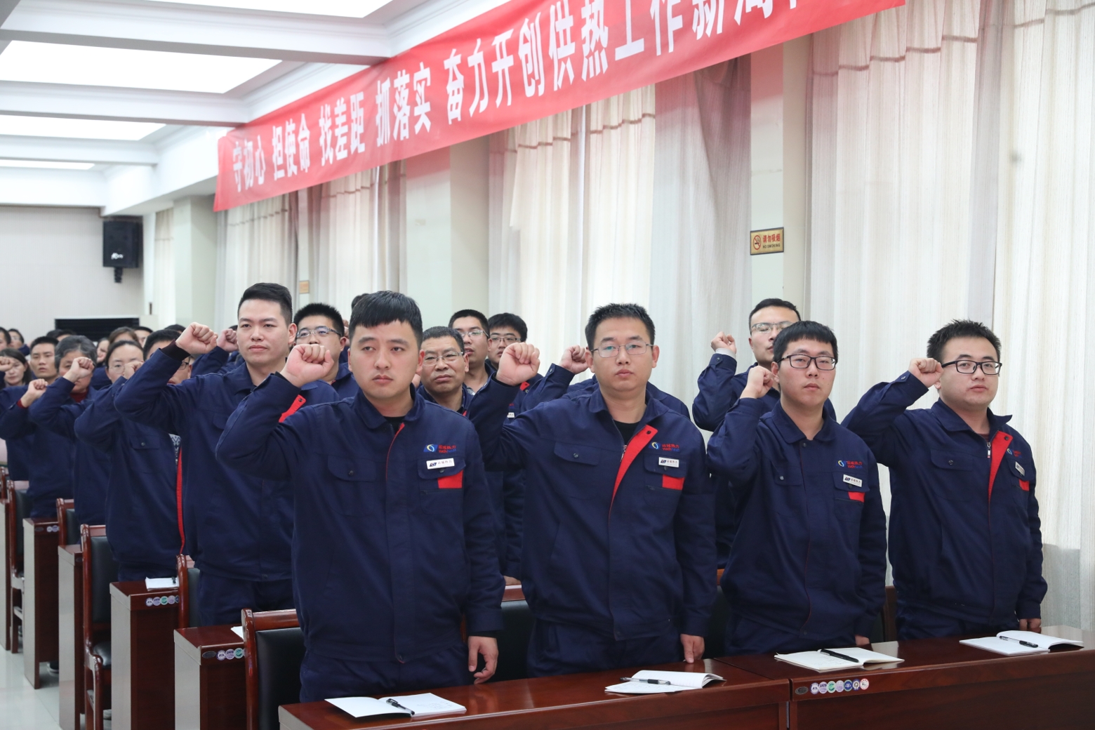 “…不負(fù)重托、不辱使命,熱情服務(wù)、勇于奉獻(xiàn),全力以赴保障供熱運(yùn)行,圓滿完成今冬供熱任務(wù)。”10月31日,公司領(lǐng)導(dǎo)班子及全體員工面對(duì)黨旗鄭重宣誓。2019—2020年度供暖季供熱誓師大會(huì)在熱源廠隆重召開。公司黨委書記、董事長(zhǎng)馬福森出席會(huì)議并作重要講話;總經(jīng)理助理王學(xué)鋒匯報(bào)了工程建設(shè)情況;副總經(jīng)理陳繼彤匯報(bào)運(yùn)行經(jīng)營(yíng)一、二分公司2019年度集中供熱準(zhǔn)備情況;副總經(jīng)理午建英匯報(bào)運(yùn)行經(jīng)營(yíng)三分公司及熱源廠2019年度供熱準(zhǔn)備情況;總工程師昝啟民匯報(bào)供熱前準(zhǔn)備情況及今冬供熱運(yùn)行安排;總經(jīng)理助理張世科宣讀關(guān)于提高員工薪酬待遇的決定,公司全體干部職工共計(jì)300余人參加大會(huì)。大會(huì)由公司副總經(jīng)理樊晟主持。
