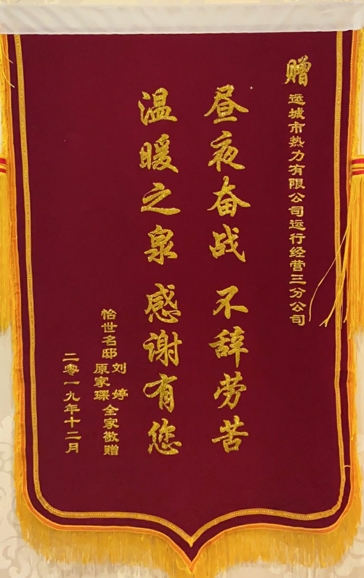 一年里,我們完成圣惠路 — 紅旗街管網工程建設、三供一業(yè)改造工程建設移交、老舊小區(qū)分戶改造項目工程等;供熱運行啟動以來,平衡管網、晝夜巡檢、進區(qū)入戶訪民問暖,解民憂、保供暖……室外寒風刺骨,室內溫暖如春,廣大群眾在感受溫暖的同時,紛紛送來牌匾、錦旗以表謝意。優(yōu)質服務贏贊譽、面面錦旗表心意,雖然是一面很普通的錦旗、牌匾,但它對熱力人來講是新年最好的禮物,它象征著用戶對我們工作的最大肯定,它代表的是一份認可、一份信任、一份期盼,更是一份責任。