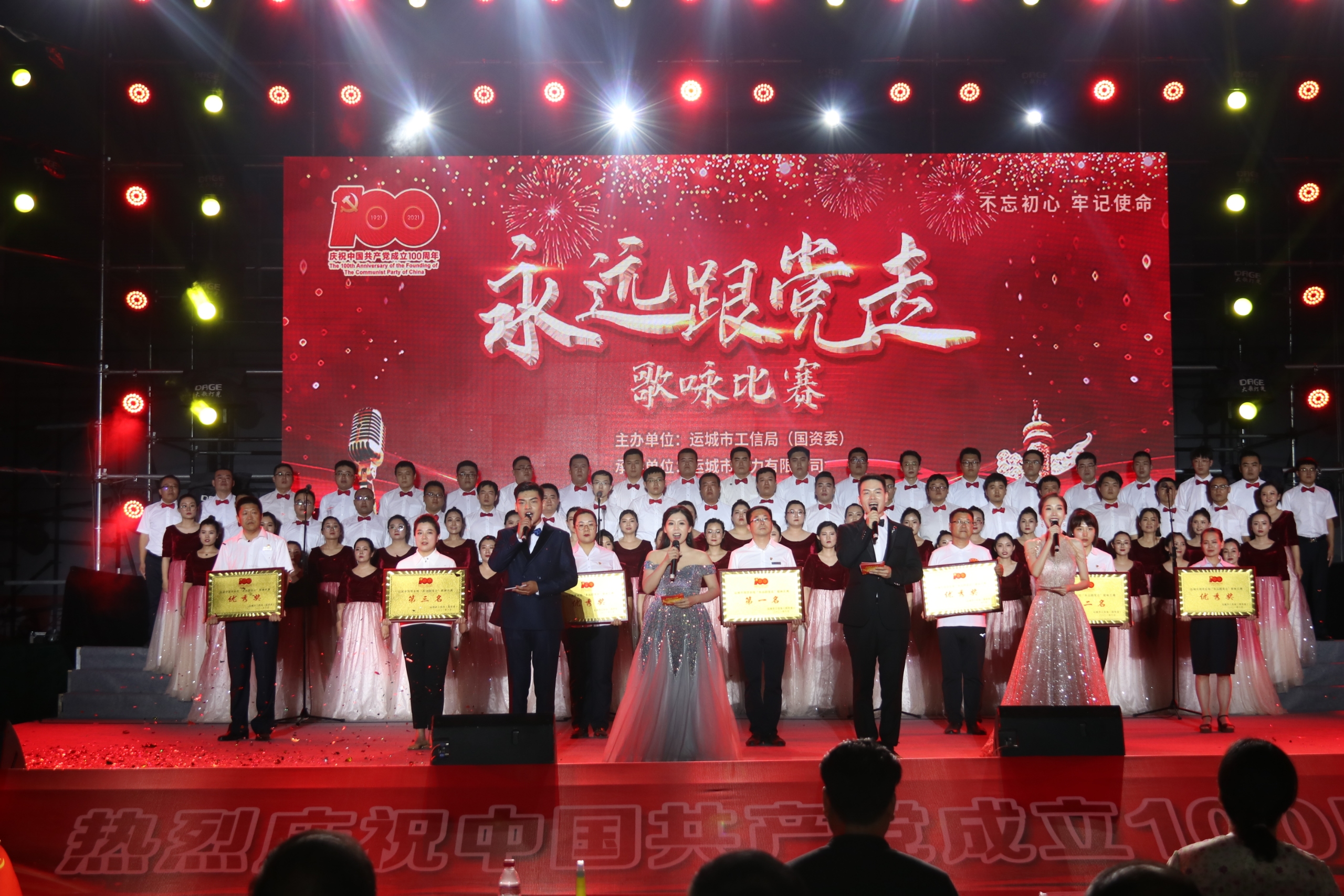 為深入推進(jìn)黨史學(xué)習(xí)教育,隆重慶祝中國(guó)共產(chǎn)黨成立100周年,6月21日,由市工信局(國(guó)資委)主辦,運(yùn)城市熱力有限公司承辦的“永遠(yuǎn)跟黨走”慶祝建黨100周年歌詠比賽在熱源廠管理分公司舉行。市人大常委會(huì)黨組成員、副主任潘志孝、市工信局黨組書記、局長(zhǎng)彭夢(mèng)森、市國(guó)資委黨委書記、市工信局黨組副書記賀紅生等領(lǐng)導(dǎo)出席并為獲獎(jiǎng)單位頒獎(jiǎng)。此次比賽共有民航機(jī)場(chǎng)、水投公司等七支隊(duì)伍共計(jì)400余人參演。