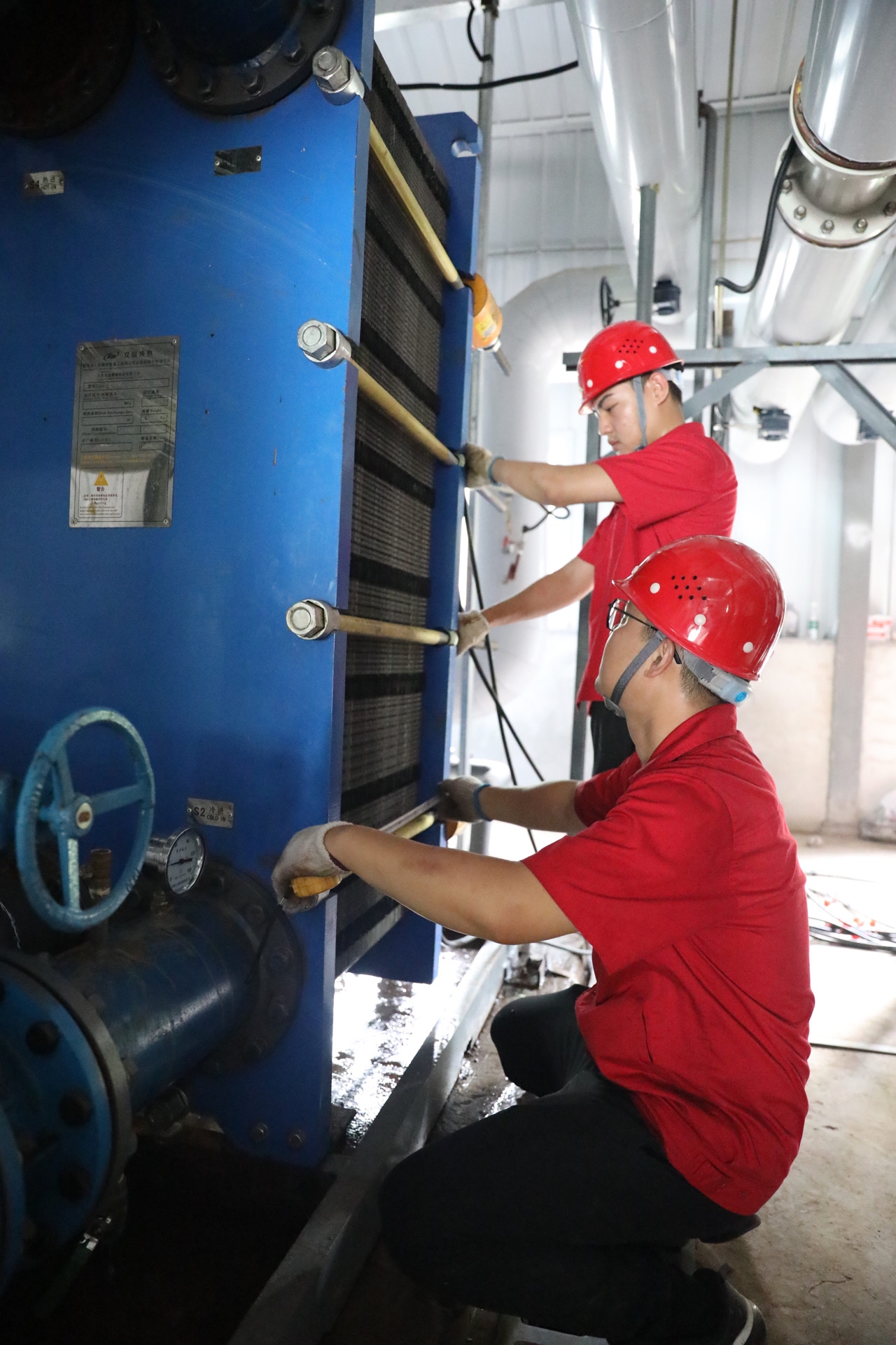 馬福森一行在紅旗街管網(wǎng)工程施工現(xiàn)場(chǎng),對(duì)現(xiàn)場(chǎng)的施工人員表示慰問。紅旗街管網(wǎng)工程工期緊、任務(wù)重,自7月6日開工以來(lái),一線人員放棄休息日,揮汗如雨奮戰(zhàn)在工程建設(shè)一線。馬福森詳細(xì)詢問了工程進(jìn)展情況,對(duì)現(xiàn)場(chǎng)安全施工情況、防暑降溫措施落實(shí)情況進(jìn)行重點(diǎn)關(guān)心,叮囑施工單位、監(jiān)理單位以及公司項(xiàng)目部人員要確保安全生產(chǎn)的前提下,保質(zhì)保量按時(shí)按期完成工程建設(shè); 在熱源廠管理分公司,馬福森一行從行政辦公區(qū)到生產(chǎn)區(qū),從10kv配電室到鍋爐零米,從脫硫脫硝區(qū)到煤源存放區(qū)……一邊查看現(xiàn)場(chǎng)安全防護(hù)措施情況,一邊了解保養(yǎng)質(zhì)量與進(jìn)度,他說(shuō):“要合理安排作業(yè)時(shí)間,要注重員工勞逸結(jié)合,確保維保工作穩(wěn)步推進(jìn)”;在地建換熱站、紫薇香河灣換熱站維修保養(yǎng)工作現(xiàn)場(chǎng),他對(duì)現(xiàn)場(chǎng)人員高溫下堅(jiān)守的工作精神給予肯定,并對(duì)維修保養(yǎng)的工作給予了現(xiàn)場(chǎng)要求,他說(shuō):“夏季保養(yǎng)工作對(duì)供熱系統(tǒng)來(lái)講尤為重要,大到板片清洗、閥門更換,小到電氣除塵、儀表校對(duì)、水泵螺栓緊固等,做到不漏檢、不漏保,確保冬季運(yùn)行安全平穩(wěn)。