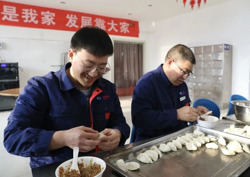 活動現(xiàn)場大家和面團、搟面皮、包餃子……忙得不亦樂乎,彰顯了熱力人的齊心合力,體現(xiàn)了領(lǐng)導(dǎo)與職工間的和諧相處、以及職工相互間的感情與友誼,讓大家感受到熱力大家庭的溫暖,更好地激發(fā)了大家的工作熱情,到處洋溢著祥和歡樂的節(jié)日氛圍。