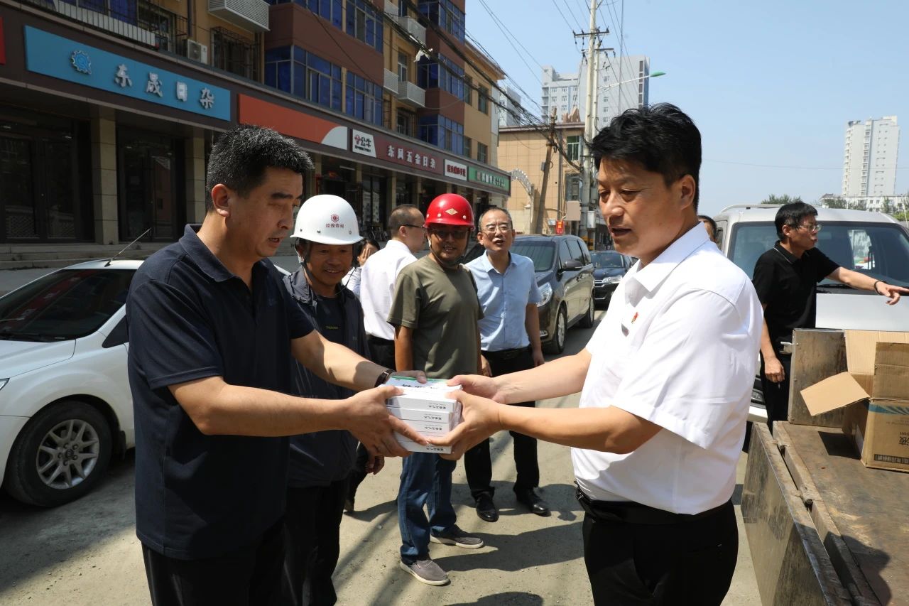 連日高溫,驕陽似火,熱浪襲人。為貫徹“以人為本”的理念,確保一線職工的身體健康和生命安全,促進(jìn)各項(xiàng)工作順利有序進(jìn)行,8月10日上午,公司黨委書記、董事長杜偉師親自帶領(lǐng)公司領(lǐng)導(dǎo)班子一行赴熱源廠、工程施工現(xiàn)場、換熱站維,F(xiàn)場及關(guān)鋁電廠維檢工地開展“送清涼”慰問活動(dòng),慰問在高溫酷暑天堅(jiān)持工作的一線職工,為他們送去關(guān)懷。在維,F(xiàn)場,公司領(lǐng)導(dǎo)親自將西瓜、藿香正氣水、風(fēng)油精、毛巾、礦泉水等防暑降溫用品送到每個(gè)奮戰(zhàn)在一線的職工手中,向他們表示親切的慰問,并叮囑大家在工作時(shí)務(wù)必確保身體健康和勞動(dòng)安全,讓職工們實(shí)實(shí)在在從心里感到 “清涼”,從而激發(fā)起廣大職工的大干熱情。公司領(lǐng)導(dǎo)心系職工的安全與健康,極大地激發(fā)了職工愛崗敬業(yè)的積極性,也進(jìn)一步增強(qiáng)了職工的凝聚力和向心力。