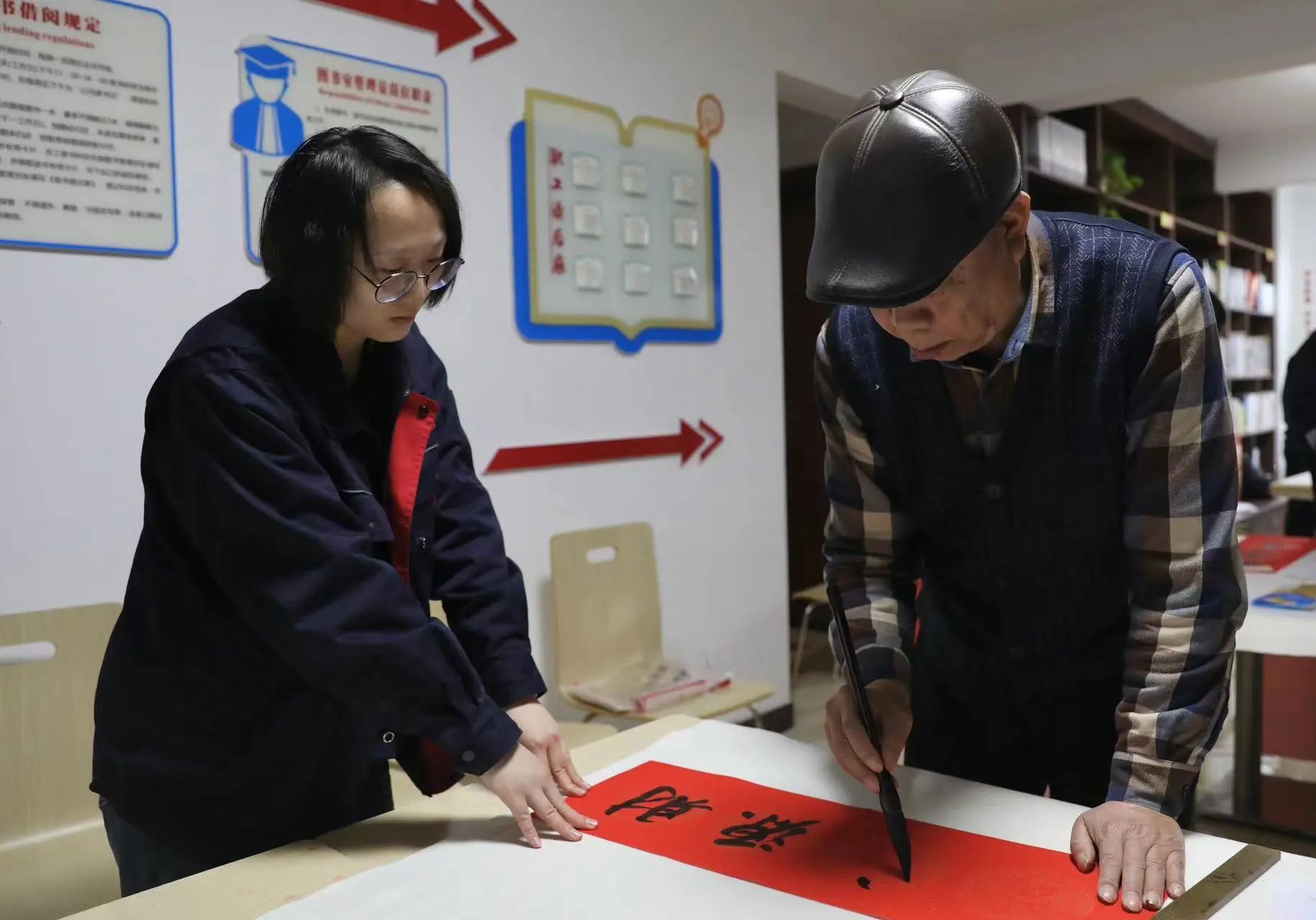 活動(dòng)現(xiàn)場(chǎng)氣氛火熱,五張方桌“L”形排開,書法家們揮毫運(yùn)墨,現(xiàn)場(chǎng)為職工義寫春聯(lián)。雄渾、潤(rùn)雅、飄逸、清正等不同風(fēng)格的書法作品一氣呵成,“飛燕銜春千里綠;祥龍送福萬家紅。龍騰盛世祥和景;燕舞新春幸福年。九霄鵬舉春箋啟;四海龍騰大夢(mèng)圓。鵬摶萬里書新夢(mèng);龍步九天踏錦程。”......每副春聯(lián)、每個(gè)“福”字,都寫滿了真情,詮釋著滿滿的新春祝福;顒(dòng)現(xiàn)場(chǎng),書法家們共書寫500余副作品。