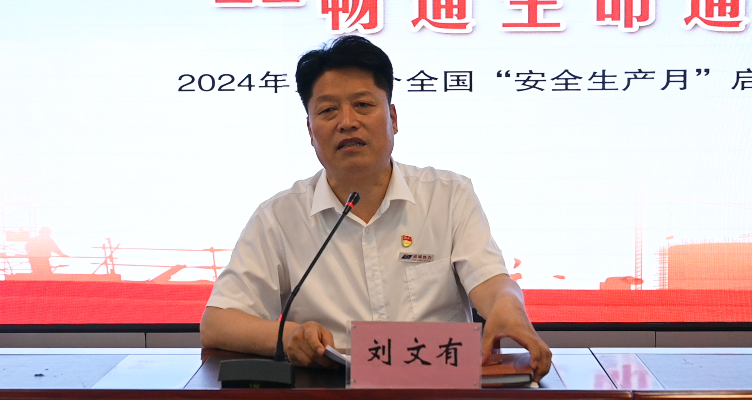 (公司黨委副書記、總經(jīng)理劉文有宣布熱力公司2024年”安全生產月“活動正式啟動。)