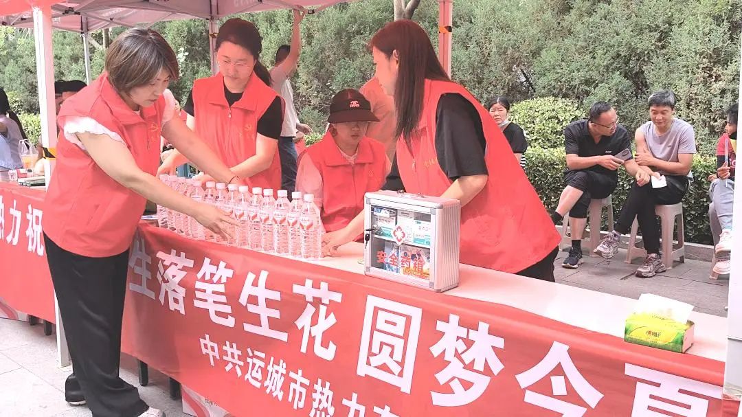 5月31日,學(xué)府名都社區(qū)發(fā)出高考志愿服務(wù)“集結(jié)哨”。公司黨委即刻激活“黨建+服務(wù)”活動(dòng)機(jī)制,以供熱應(yīng)急保障的高標(biāo)準(zhǔn)、嚴(yán)要求籌備此次活動(dòng)。僅12小時(shí),便高效完成60名黨員的召集、物資籌備以及活動(dòng)前培訓(xùn)等工作。6月7日清晨7時(shí),天光微亮,公司黨員志愿者們已在康杰中學(xué)考點(diǎn)周邊搭建起“熱力愛心服務(wù)站”的紅色帳篷。帳篷上“運(yùn)城熱力祝所有考生落筆生花 圓夢(mèng)今夏”的標(biāo)語(yǔ)格外醒目,與黨員們身上的紅色志愿服務(wù)馬甲相互輝映,成為考場(chǎng)外一道溫暖的風(fēng)景線,F(xiàn)場(chǎng)精心設(shè)置“物資保障區(qū)”“家長(zhǎng)休息區(qū)”,準(zhǔn)備了1500瓶礦泉水、20套板凳以及防暑藥品,每一處細(xì)節(jié)都承載著對(duì)考生和家長(zhǎng)的深切關(guān)懷。